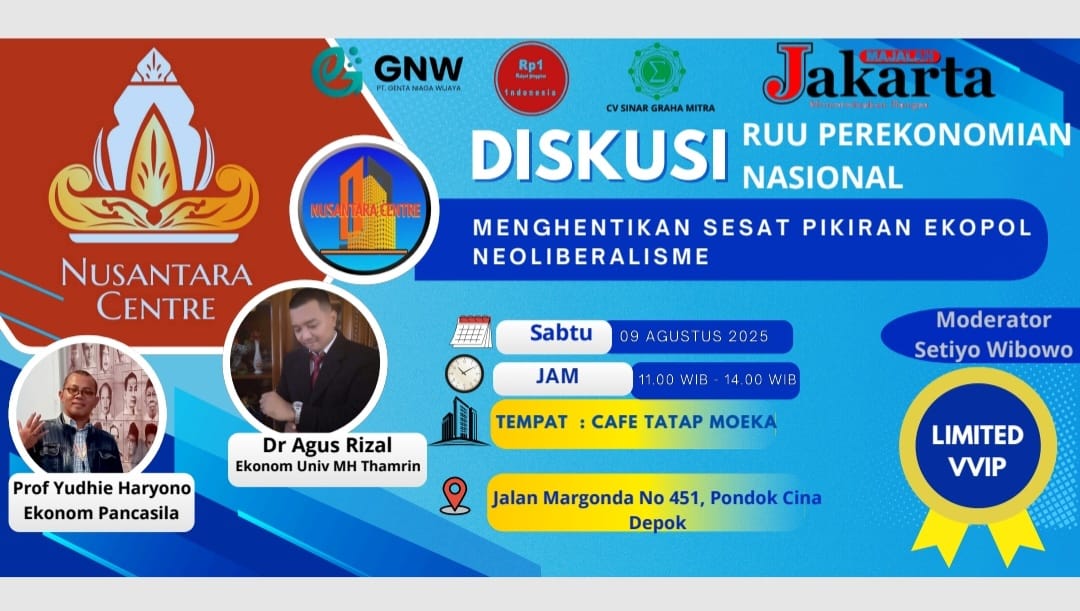 Diskusi berlangsung pada Sabtu, 9 Agustus 2025, mulai pukul 11.00 WIB hingga selesai, terbuka bagi publik yang peduli pada masa depan kedaulatan ekonomi Indonesia.
