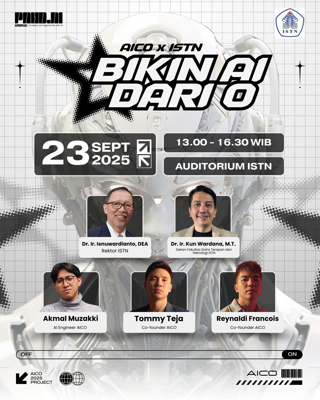 Melalui kegiatan bersama ISTN dan EKRAF ini, AICO berharap dapat membangun ekosistem pembelajaran yang mendorong lahirnya talenta-talenta baru di bidang AI, sekaligus memperkuat kontribusi Indonesia dalam perkembangan teknologi global.